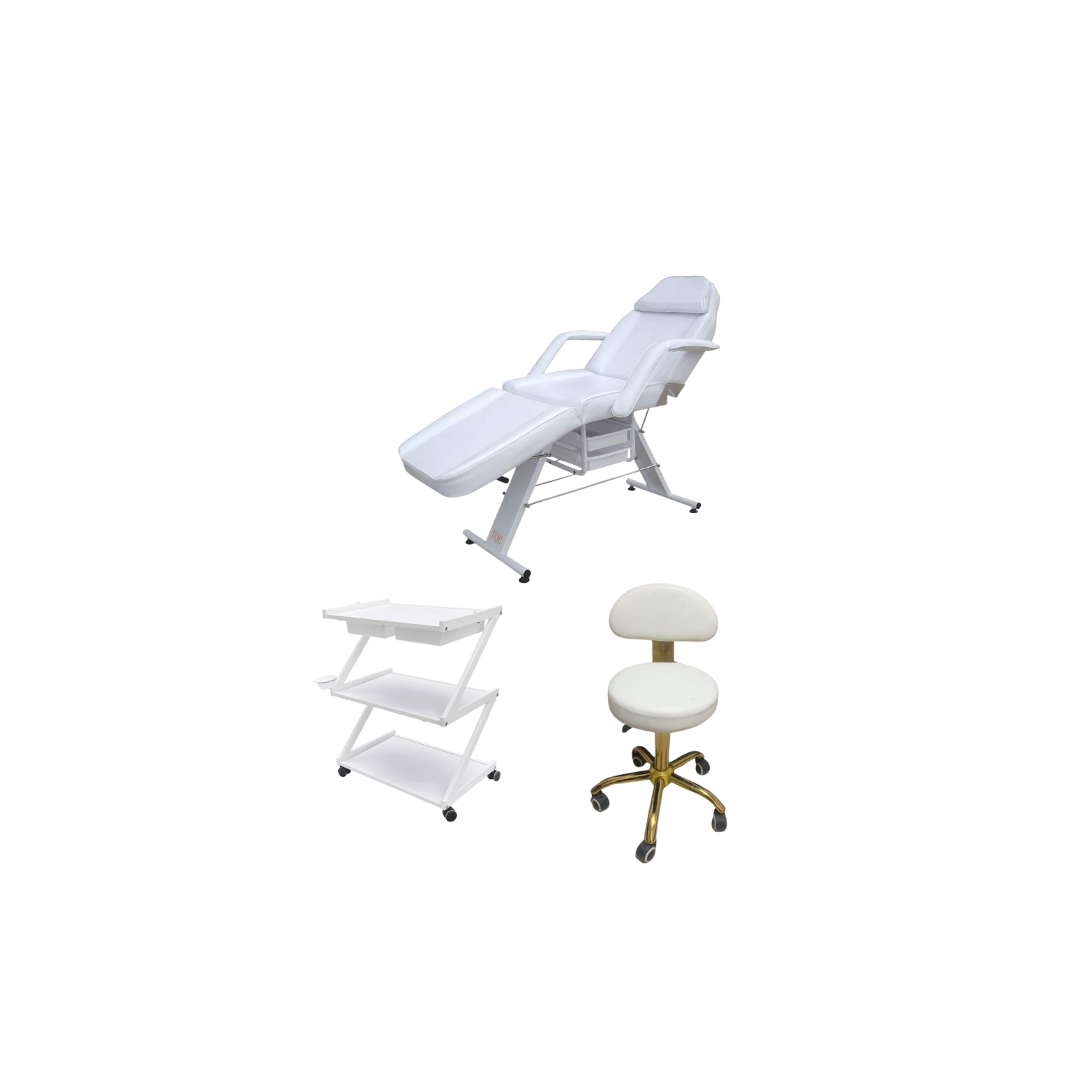 כיסא קוסמטיקה + עגלת קוסמטיקה בצבע לבן